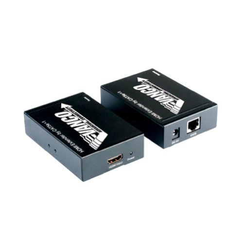 The HDMI Extender allows you to extend your HDTV display up to 165 feet using a Category 5e cable connection. The transmitter unit connects to the HDMI audio/video device with a HDMI connection. The receiver is located near the HDTV display source (HDTV, monitor) and connected to the display source with a HDMI connection. Then, the transmitter and the receiver units are connected together with one Category 5e cable that transmits a pristine high definition signal between the A/V device and the HDTV display up to 165 feet. High Definition Multi-Media Interface (HDMI) carries uncompressed digital video and audio signals on one cable from a digital video source to a display device. This provides the best detail, truest color and sound, and highest resolution. This HDMI extender supports high definition resolution 1080p, supports 1.65 Gbps per channel bandwidth, as well as uncompressed 2 channel audio such as Linear Pulse Code Modulation (LPCM). It is H.D.C.P. (High-Bandwidth Digital Content Protection) compliant.